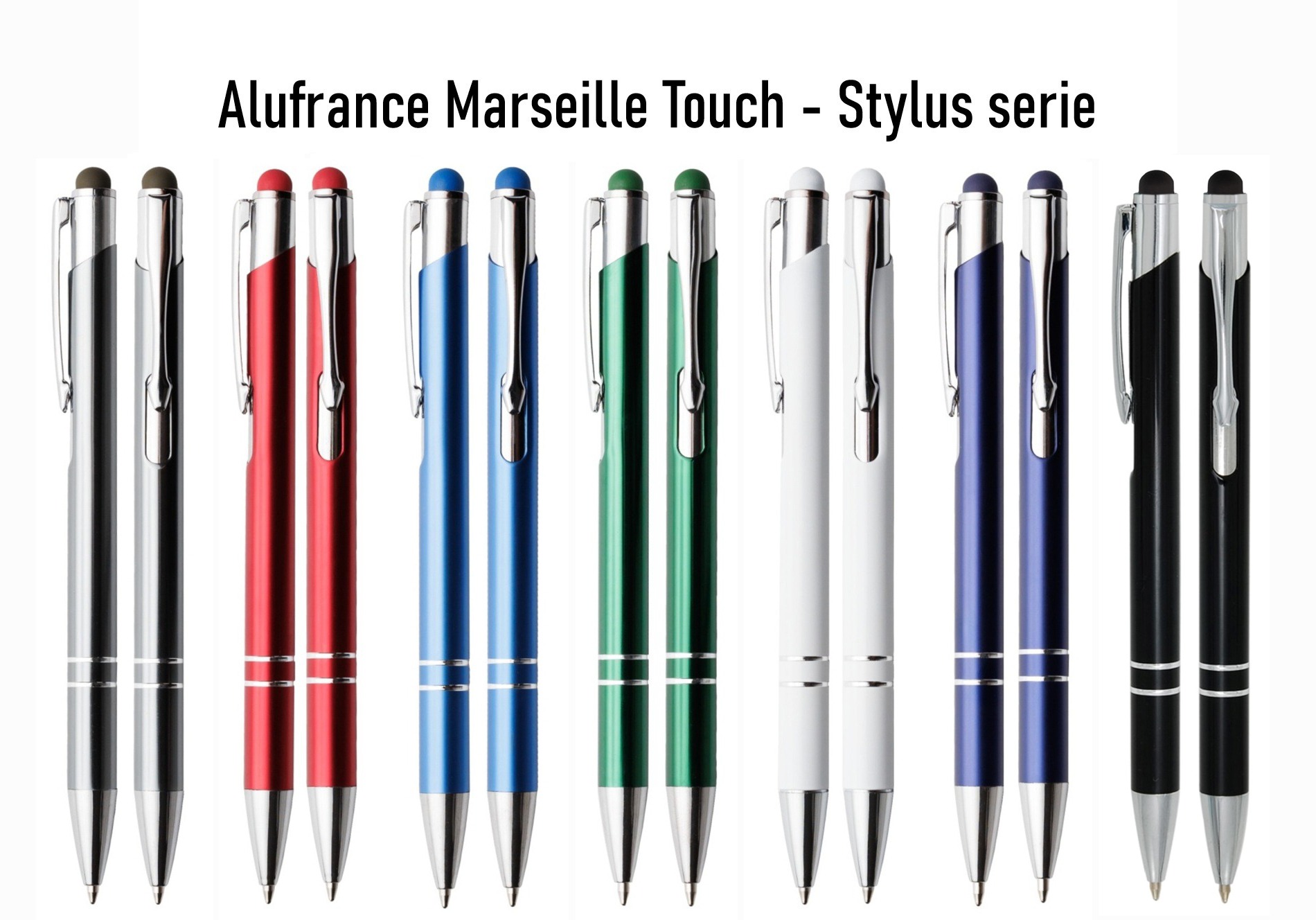 De Alufrance series aluminium pennen zijn razend populair, hebben een luxe uitstraling en zijn in veel kleuren verkrijgbaar, de serie Marseille in maar liefst 25 kleuren! Een fraaie aluminium balpen met gravure van jouw logo en/of tekst is een welkom promotieartikel. Gezien de prijs hebben aluminium pennen toch een luxere uitstraling dan kunststof pennen, echt waar voor jouw geld.