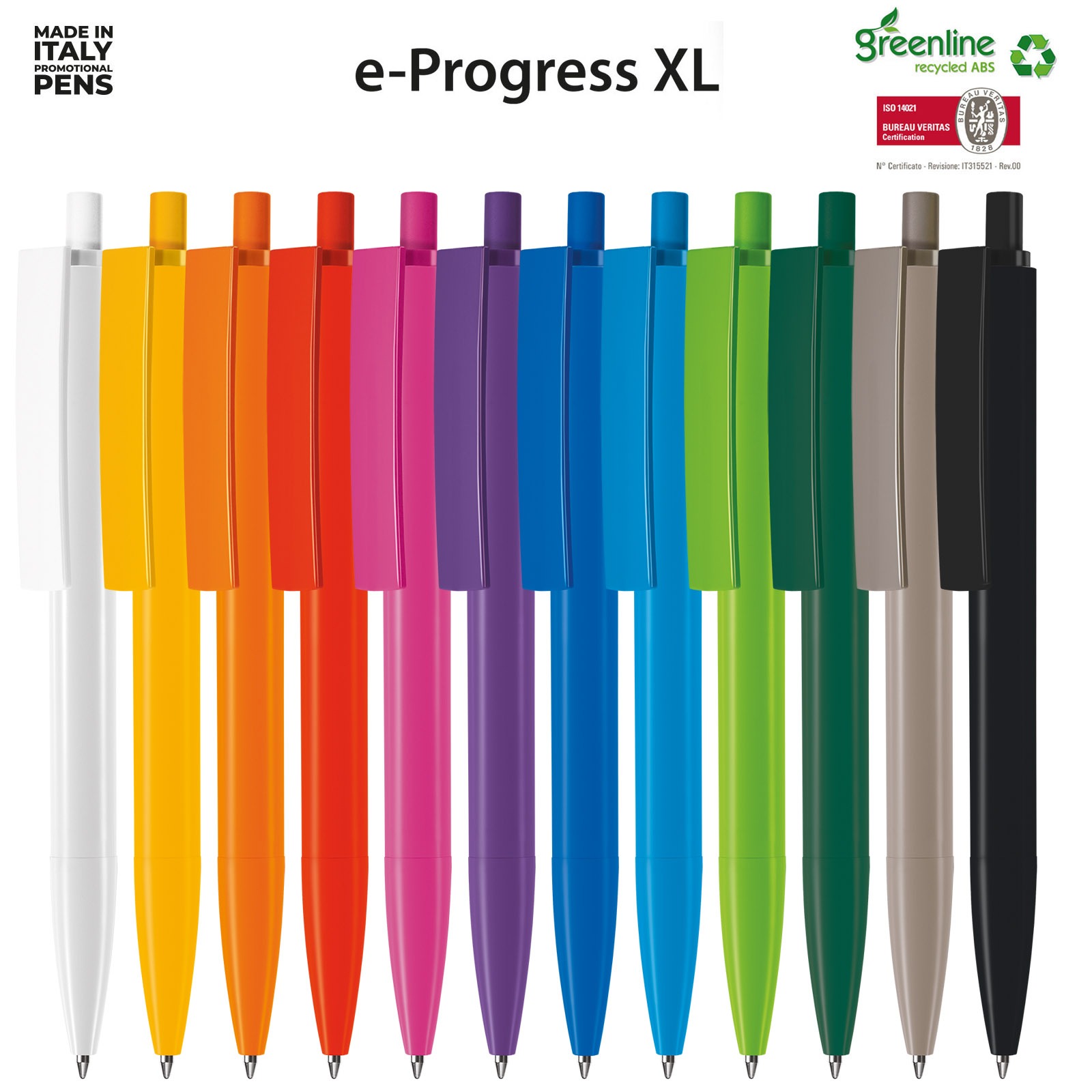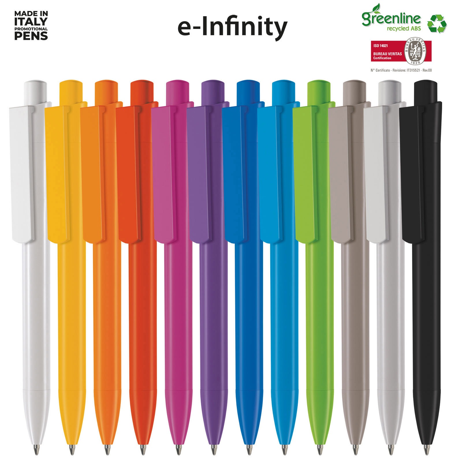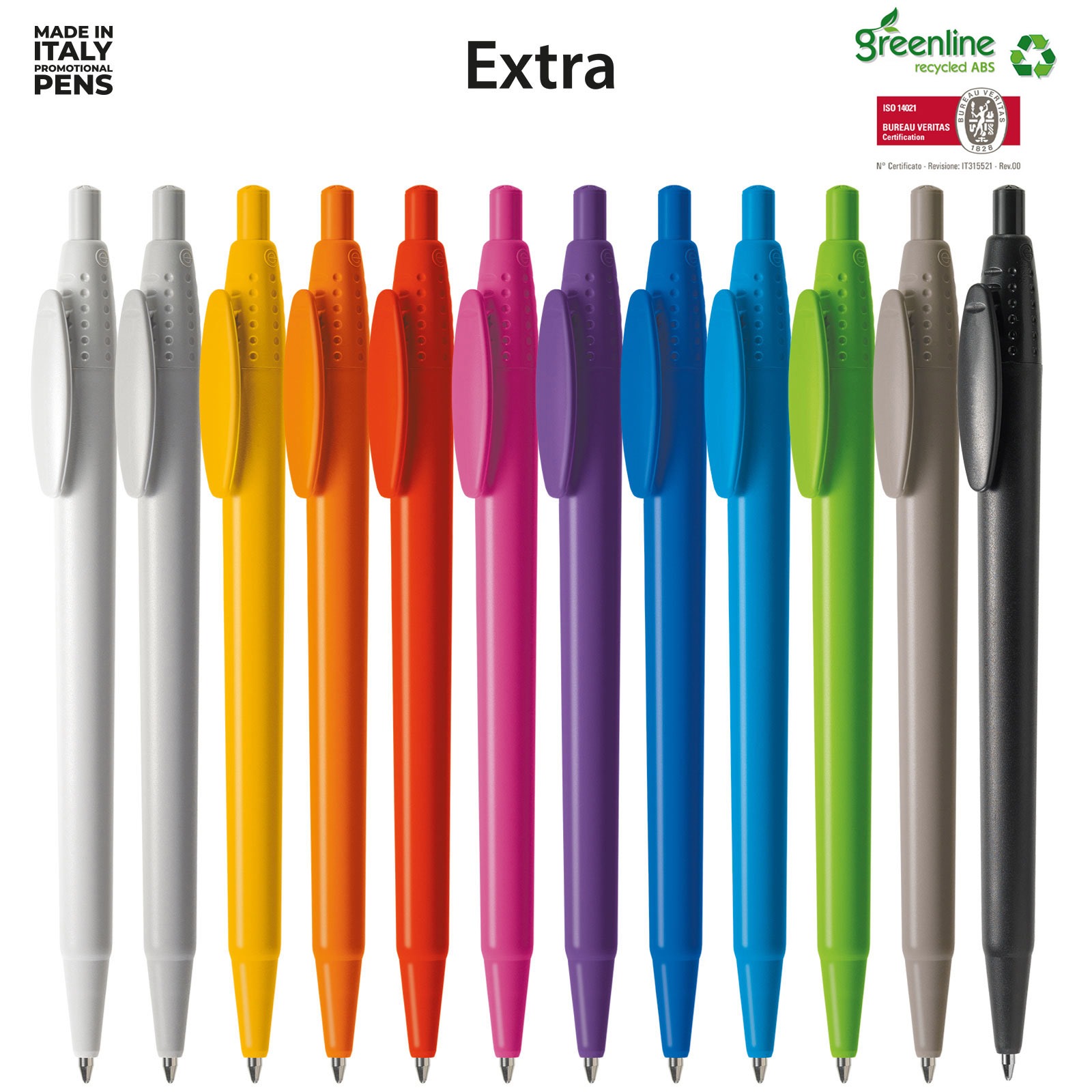 Sinds 1968 maakt Erga de fraaiste Italiaanse design balpennen. Een groot aantal modellen van 100% gerecycled ABS, in ieder geval alle modellen met 30% gerecycled ABS. De transparante modellen of onderdelen zijn van 30% gerecycled Terlux ( MABS ). Glashelder en briljant van kleur.